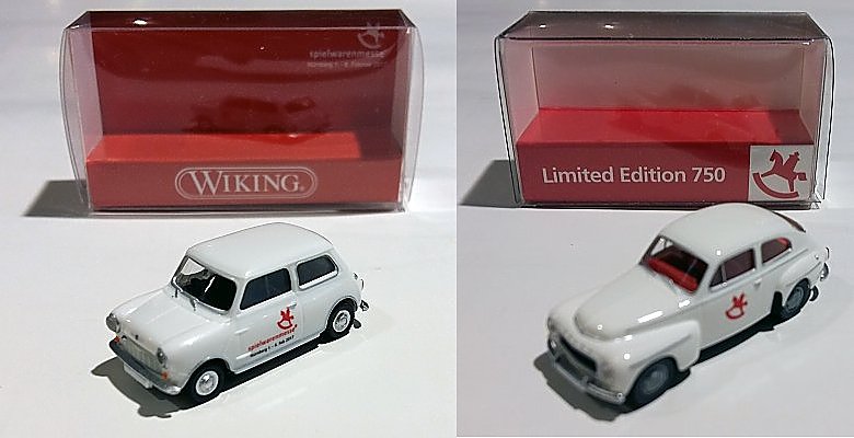 Abschließend zeigen wir noch die beiden Messemodelle: links das Modell, welches es für die Händler am WIKING-Stand gab, rechts das Modell, welches die Spielwarenmesse eG aufgelegt hat.
