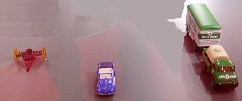 daß das Modell entsprechend dem Vorbild über einen längeren Radstand als der Leiterwagen verfügt.