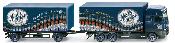 Das WIKING-Modelljahr 2002 beginnt mit einem bemerkenswerten Neuheitenquartett und deckt damit gleich eine ganze Themenbreite ab. Allen voran der VW Polo, der angesichts des außergewöhnlichen Vorbilddesigns für die Berliner Modellbauer eine willkommene Herausforderung war - die Miniatur erforderte erstmals eine zweigeteilte Verglasung. Für den Mähdrescher Claas Lexion 480 gibt's jetzt auf vielfachen Wunsch ambitionierter Sammler den Transportwagen für das mächtige Schneidewerk, das bekanntlich abnehmbar ist. Damit erfährt das Landwirtschaftsthema eine weitere erfreuliche Bereicherung. Mit dem Esterer-Tankaufbau erhält der dreiachsige Mercedes-Benz Atego derweil neue Aktualität. Der Aufbau wurde komplett neu entwickelt und entspricht den heute in der Cityversorgung eingesetzten Gefahrguttransportern. Bemerkenswert: Die Schlauchhaspel ist zwischen Fahrerhaus und Aufbau angeordnet und wird vor allem in engen Wohngebieten genutzt. Und der MAN TG-A fährt nun auch als Festkoffer-Hängerzug vor und erhält mit der Bayreuther Brauerei Gebr. Maisel eine attraktive Gestaltung - jetzt gibt's reihenweise Flaschenweisse!