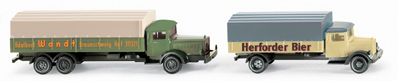 Karmann Ghia Coupé, Ford Capri und Mercedes-Benz 220 S – das sind Klassiker, die Spaß machen. Und den unterstützt WIKING mit neuen Farben, natürlich nach authentischen Vorbildern gestaltet. Aber die Modellpflege nimmt sich auch der aktuellen Miniaturen an und stellt den Unimog U 400 in den Dienst der Feuerwehr. Der Pritschen-Hängerzug mit MAN TG-A XXL-Zugfahrzeug schafft einen augenfälligen Kontrast zur zeitgleichen Auslieferung des Krupp Titan, weil auf diese Weise zeitgenössische Werbeauftritte ein und desselben Markenartikels von gestern und heute reizvoll gegenübergestellt werden können. Und weil sich 2004 die Einführung der WIKING-Modelle in der Spur N zum 35. Mal jährte, kommen gleich sieben modellgepflegte 1:160-Miniaturen ins Programm – die Liebhaber wissen das zu schätzen. |