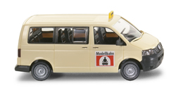 Nach dem letztmaligen Sondermodell 2002 – die damals soeben vorgestellte E-Klasse war als Taxi thematisiert worden – knüpft WIKING erneut ans Messethema an. Und da gehören Taxis nun einmal in trefflicher Weise dazu! In diesem Jahr lässt WIKING den neuen VW T5 als Großraumtaxi auf den Messestand rollen. Selbstverständlich ebenfalls im Maßstab 1:87 und in der begehrten Stückzahl für den Messebesucher gedacht – natürlich nur solange der Vorrat reicht! Auf der Tür des Taxis prangt das Messelogo der Großveranstaltung für Modellbahn-Enthusiasten. |